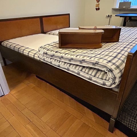 Ett sängbord och sänggavlar till enkelsäng (90 cm)