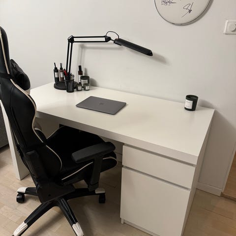 Jätte fint stort skrivbord. Sparsamt använt. 200×60cm. Kan skruvas isär, om så önskas. Hämtas i Vårsta.