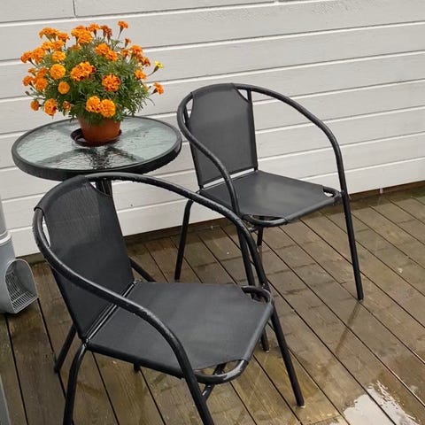 Utemöbler - två stolar och runt glasbord