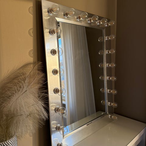 Riktigt fint skrivbord/sminkbord. Dekorplast på toppen, men går självklart att ta bort eller lägga nytt utifrån sin egna stil eller ta bort helt och få den mörka fina orginalfärgen.