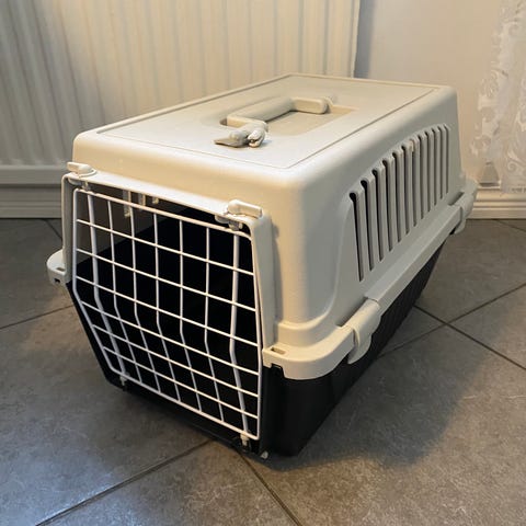 Transportbur för katt eller liten hund plast beige svart