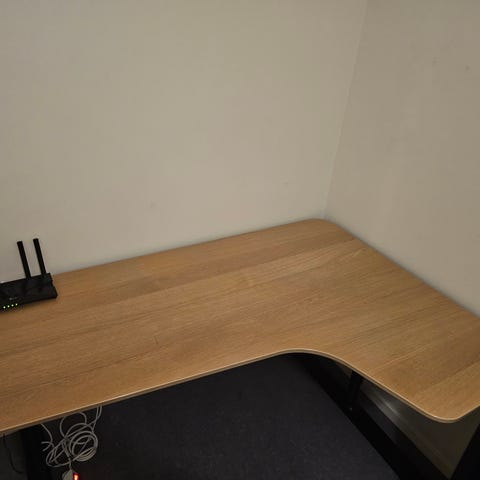 Hörnskrivbord med till följande stol. Skrivbordet är köpt online och stolen är köpt på ikea. Båda möblerna är knappt använda och är i mycket gott skick.