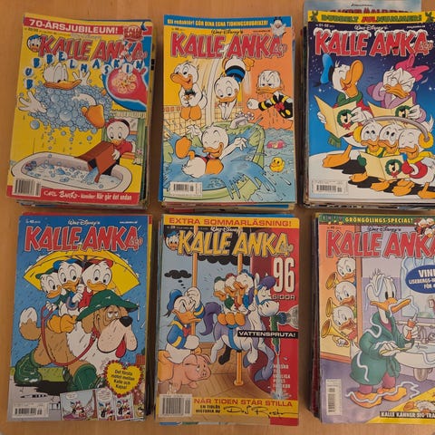 Kalle Anka & C:o serietidningar, blandade nummer. Årgångar från 1980 - 1999, 56 stycken. Endast avhämtning.
