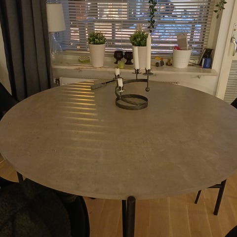 Ett runt matbord, 130cm rund, och 4 st stolar i bra skick säljes i Umeå, Klintvägen.