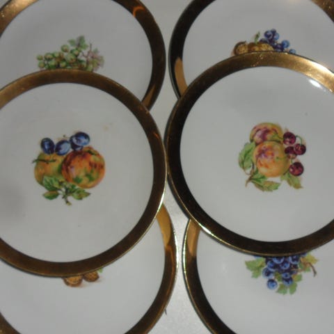 5 st äldre fat kakfat porslin med guldkant 1950-talet