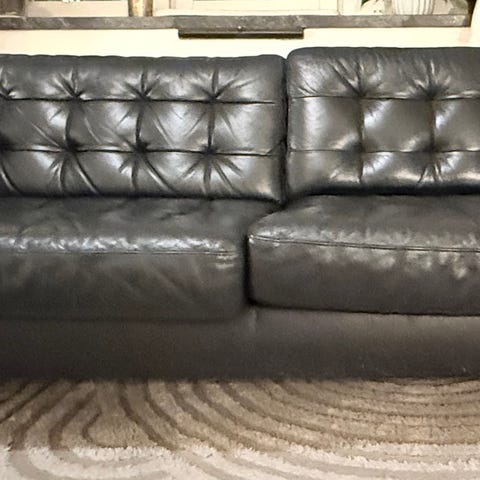Säljer min IKEA KARLSTAD 3-sits soffa i svart läder (art.nr 700.330.02).