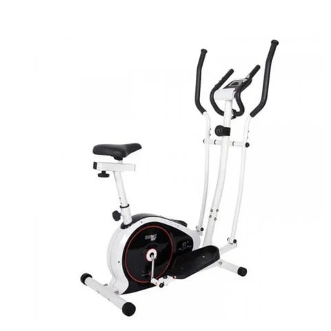 Träningscykel motionscykel i vit och svart färg. Utrustad med styre med flera greppmöjligheter, sadel som kan justeras i höjd och pedaler med remmar. Lämplig för inomhusträning som konditionsträning och uppvärmning hemma. Passar för vuxna användare.