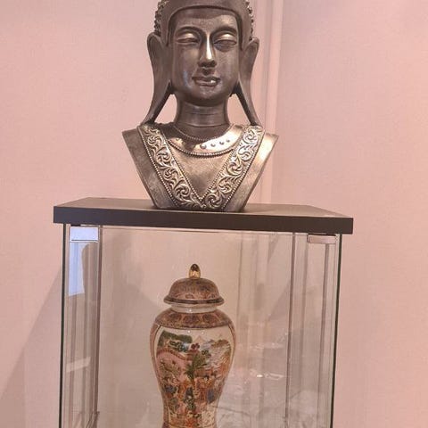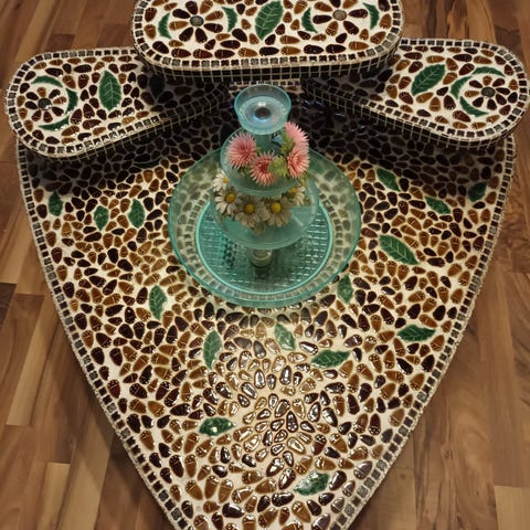 Bladen runt fontänen är av på två ställen men kan limmas men syns inte att de är av eftersom blommorna ligger över.