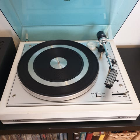 Alla knappar/reglage och funktioner fungerar som de skall. Fräsch rem. Singelpuck ingår med. Audio Technica pickup/nål.