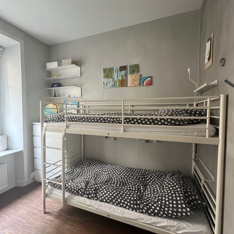 Loftsäng helt ok madrass ingår, 90 cm bred.
