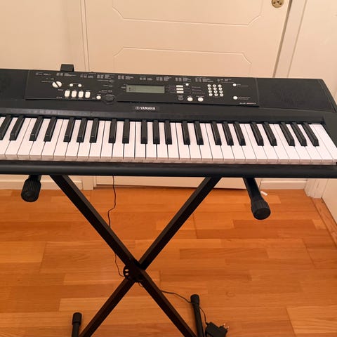 Säljer en välfungerande Yamaha PSR-E443 med 61 tangenter och inbyggda högtalare. Många olika ljud, rytmer och inspelningsfunktion gör den rolig och utvecklande att spela på.