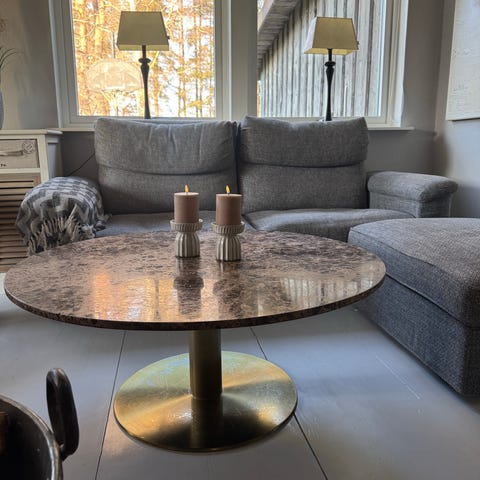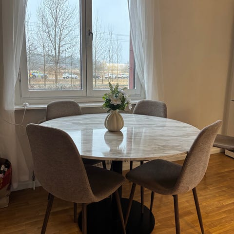 Bord ”Tiffany” från Mio i äkta italiensk marmor med svart pelarfot. Ø106 cm