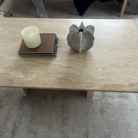 Säljer ett äkta marmor soffbord från Audo Copenhagen i Carrera marmor. Bordet är tungt (82kg) och behöver transporteras av minst två personer.