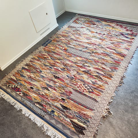 Denna handknutna Ait Ougherda-matta är ett unikt mästerverk av traditionellt hantverk. Varje tråd är noggrant vävd för att skapa komplexa, geometriska mönster inspirerade av naturen och kvinnorna i bergen där mattan har sitt ursprung. Naturlig ull i levande färger kombineras med silkestrådar som ger en subtil lyster och extra djup. Mattan är helt unik – ett totalt one of a kind-exemplar som inte finns någon annanstans i världen. En exklusiv och tidlös del av heminredningen.