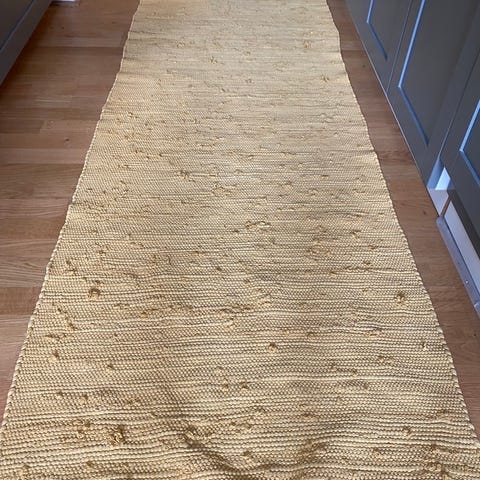 IKEA matta i brun melerad ton. Vävd struktur som passar i exempelvis hall, vardagsrum eller sovrum. Rektangulär form med fransar i kortändarna. Materialet är en tålig textilblandning som lämpar sig för inomhusbruk. Mått B160 , L 230