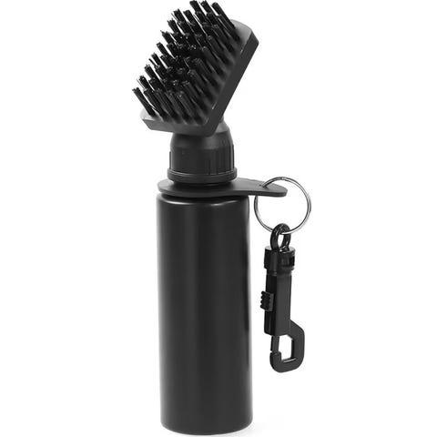 Golfklubbsborste i svart färg. Borsten är avsedd för rengöring av klubbor och kan fästas på golfbag. Finns även en vattenbehållare så du kan spruta vatten på klubbhuvudet när du rengör det.