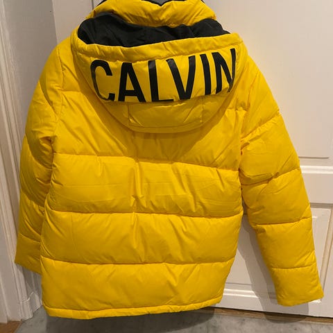 Calvin Klein vinterjacka för herr i storlek S. Jackan är svart och tillverkad i polyester. Modellen är vadderad med horisontella quiltade sömmar och har huva. Jackan har hel dragkedja framtill med skyddande slå, samt sidofickor. Passar som varm ytterjacka under kallare väder.