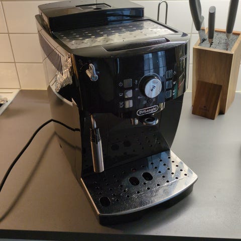 De'Longhi Autentica Plus espressomaskin i silver och svart utförande. Helautomatisk kaffemaskin med inbyggd bryggenhet och frontpanel med display och knappar för val av dryck och inställningar. Utrustad med manuell ång-/mjölkskummare på sidan för tillredning av till exempel cappuccino och latte. Droppbricka och galler i metall samt utdragbar pip för olika koppstorlekar. Maskinen är avsedd för malet kaffe eller kaffebönor beroende på modellens specifikationer och ansluts med vanlig elkabel. Obs den som köper bör köra rengöringsprogram och avkalkning, hinner ej göra det och säljer därav billigt.