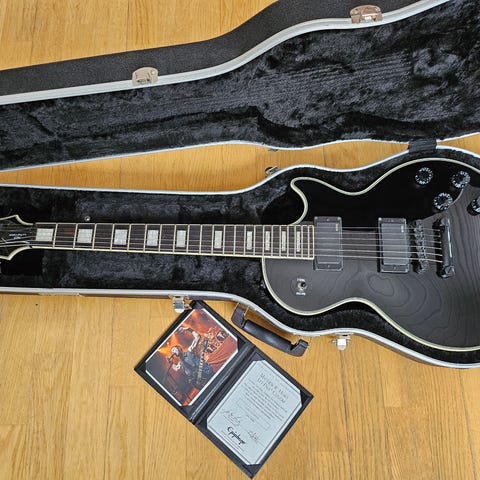 Säljer en Epiphone Jerry Cantrell Les Paul Custom Prophecy i Bone White i absolut nyskick. Inga repor, inga märken, inga skador. Aldrig giggad – endast spelad sparsamt hemma.