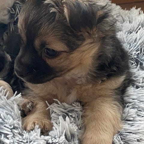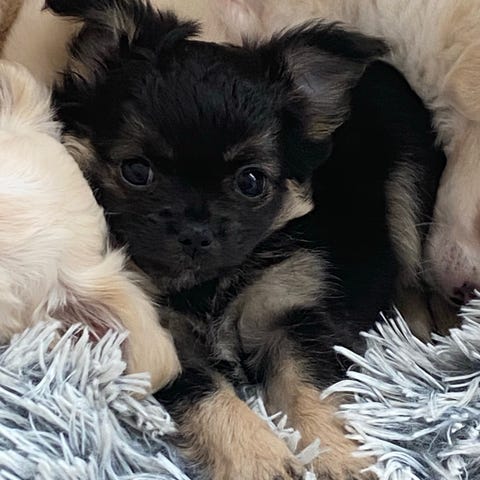 Denna lilla sötnos som är en blandning mellan Långhårig Chihuahua och Papillon är otroligt social, glad och framåt och fullproppad med kärlek.