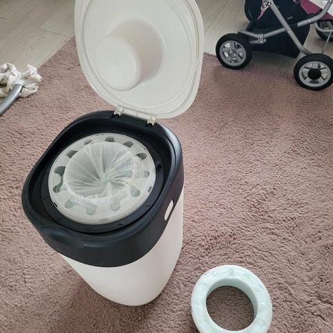 Praktisk, smidig och rymlig blöjhink från UBBI. Mycket effektiv luktförsegling som hindrar blöjlukt. Inga särskilda påsar krävs utan det går att använda de flesta. Barnsäkert lock.