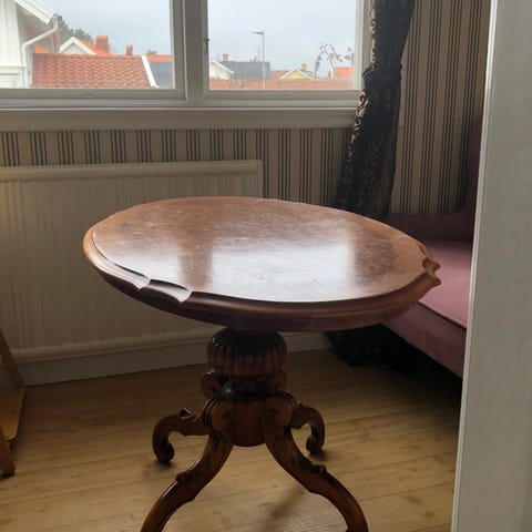 Skick: Begagnat bruksskick. Det finns spår av användning, repor på ovansidan och märken på hyllplanet (se bilder för egen bedömning). Med lite slipning och olja/färg