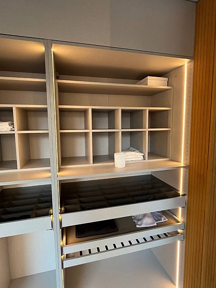 Garderoberna är monterade och på plats finns snickare som kan hjälpa till med demontering och lastning i bil eller släp.