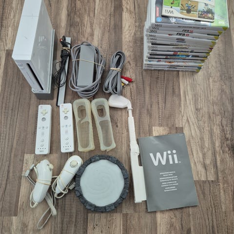 Nintendo Wii spelkonsol med två handkontroller och spel