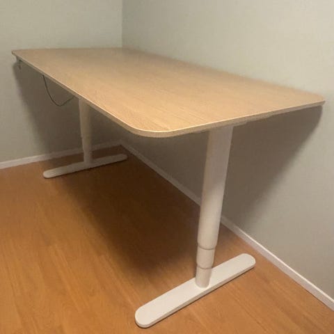 Ragnars skrivbord höj- och sänkbart med rektangulär bordsskiva i valnötsliknande utförande och vitt stativ. Bordet är utrustat med elektrisk höjdjustering via styrpanel monterad på bordskanten. Till skrivbordet hör en grå bordsskärm som monteras på bakkanten av bordsskivan och fungerar som avskärmning och ljuddämpning. Passar som arbetsbord i hemmakontor eller kontorsmiljö.säljes allt tillsammans med grå panel och stol matta..man kan alltid förhandla priset och kan bjuda bättre priser med andra varor som jag säljer alltså blir billigare på bada pris och leverans kostnader för dig..rekomanderar tipptapp transport app för enkelt och stabilit om man har inte råd med bil osv..gärna kollamin andra varor ockso försälnnig säkert du hittar nånting interreserrad av din behöv..