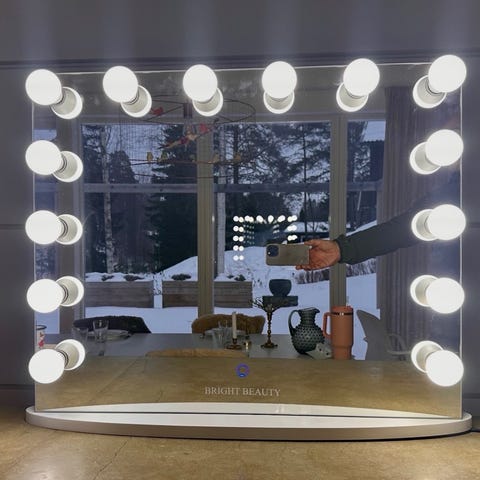 FENCHILIN stor Hollywood sminkspegel med lampor Bluetooth bordsskiva väggfäste vit 80 x 58 cm White 80 x 58cm