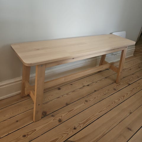 Köpt på Formlagret. Bordet är i fint skick med några mindre patinafläckar. De går att slipa till och olja och bordet blir som nytt igen.