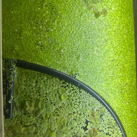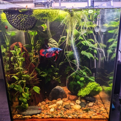 Akvariumrot med Anubias och ricciamossa.