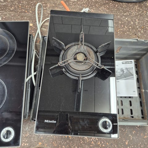 Miele grillhäll för inbyggnad i köksbänk. Utrustad med grillgaller och vred för manuell temperaturreglering på frontpanelen. Avsedd för matlagning och grillning inomhus som komplement till övriga hällar eller spisar.