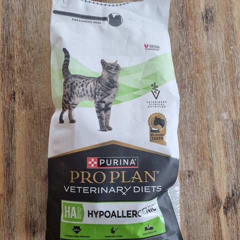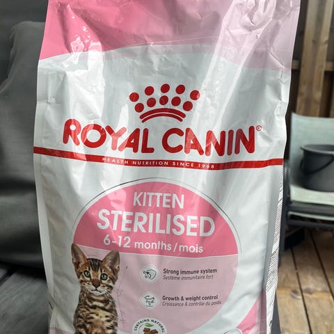 3,5kg bag of allergy friendly cat food. Only used on one occasion as my cat ended up being very allergic despite my vet telling me to start switching him to this one. We went back to his old food now. There is so little taken out of the bag that my scale reads 3,7kg (there is the weight of the bag too). Expires in April 2027. New price is approximately 500kr, varies a bit from site to site.
