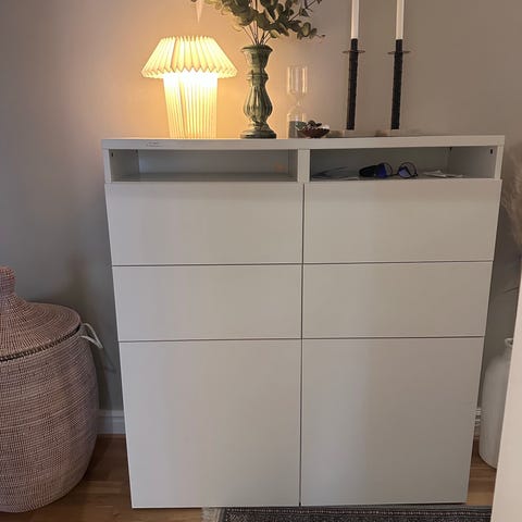 Säljer min Bestå byrå inklusive vit glasskiva på toppen. Byrån är i mycket bra skick och har inga skavanker.