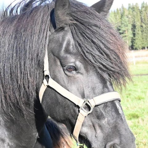 Trevlig sto 3 år tränade jätte bra inför premie fick en stressfraktur i knäet vilat tills nu,ska börja träna har blivit lite riden i paddocken