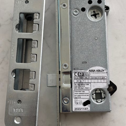 ASSA (Fix) säkerhetshandtag 835s med cylinderhus för 5-stiftig cylinder - alltså en äldre kortare cylinder.