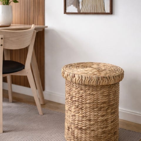 Förvaring i rotting. Setet består av flera runda behållare med lock i flätad och lackad rotting. En av lådorna har bärhandtag upptill. Lådorna kan användas för förvaring av mindre föremål i hemmet, till exempel i vardagsrum, sovrum eller hall. De kan staplas eller användas var för sig som praktiska och dekorativa förvaringsenheter eller brickor.