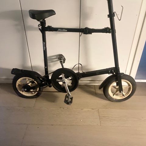 2 stycken, 600 kr per styck.Biltema hopfällbar cykel 20 tum silver