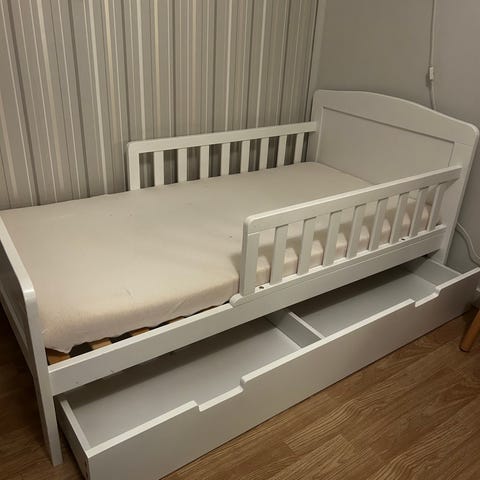 Passar som övergångssäng mellan spjälsäng och fullstor säng för barn.