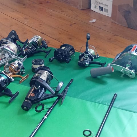 🔹 2 fiskespön är helt nya med nya linor🔹 Resterande spön är i mycket gott skick🔹 Flera fiskerullar ingår🔹 Massor av beten – både nya och använda🔹 Håv (fisknät)🔹 Fiskvåg för att väga fisken🔹 Tång och fiskkniv🔹 Stora, medelstora och små beteslådor för förvaring🔹 Krokar, linor, flöten och mycket mer