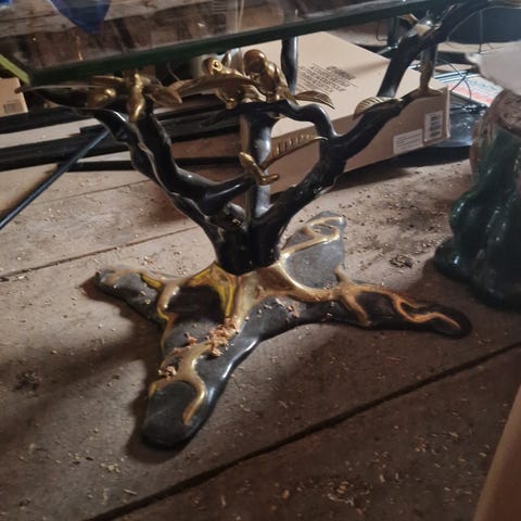 En kista i furu från 1990, använd lite som soffbord annars som förvaring mest. Gulnat med patina. Finns ingen nyckel dock till låset. Fina svarta detaljer med bärhandtag på sidorna.