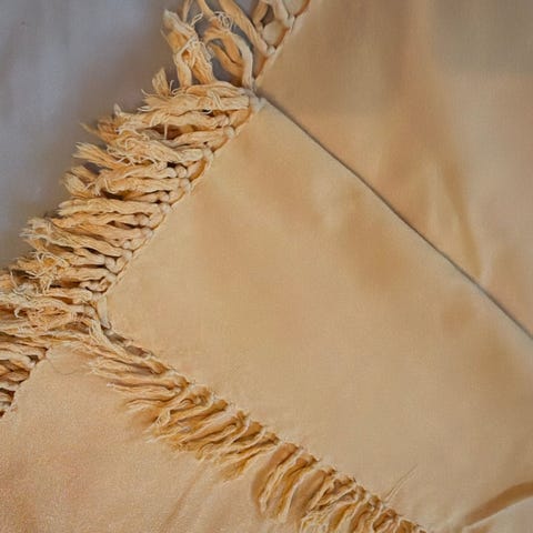 Gul retro duk med brodyr. Mått 63*68 cm.
