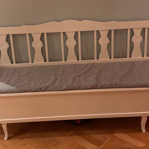 Nätt kökssoffa i bruksskick , märken och torrsprickor finns, , se bilder soffan är i använt/begagnat skick , ser ut att den är limmad på ngt ställe. se bilder .