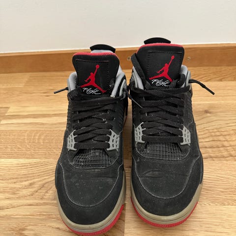 Jordan sneakers i storlek 42. Skorna är i huvudsak svarta med röda detaljer och ljus yttersula. Klassisk snörning och vadderad plös med Jordan-logga. Passar som vardagssko eller för basket och annan fritidsaktivitet.