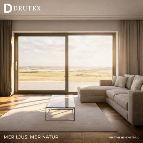 Säljer och levererar terrassystemet IGLO Edge Slide från Drutex, ett stilrent och energieffektivt skjutparti som passar perfekt för villa, uterum eller nyproduktion.