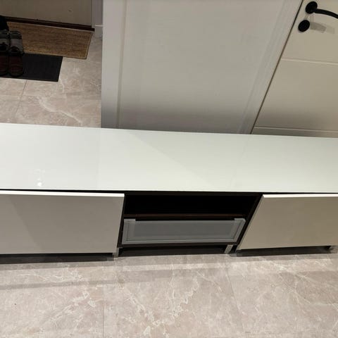Säljer en modern och stabil TV-bänk som är sparsamt använd och i bra skick. Gott om förvaring för medieboxar, spelkonsoler och annat. Passar de flesta TV-storlekar.