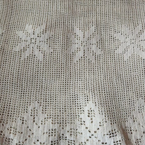 Rund köks duk handvirkat med svensk tråd från Mölnlycke. Färg natur beige. Diameter 170 cm, passar till mindre rektangulär bord eller rundad bord.