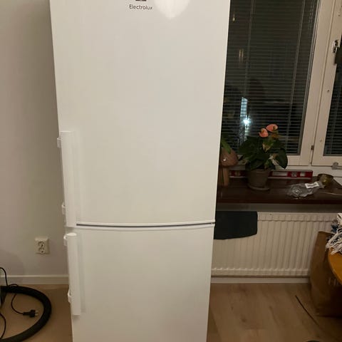 Bosch kombiskåp kyl och frys i vitt. Skåpet har överdel med kylutrymme och flera glashyllor, dörrhyllor samt en grönsakslåda. I nederdelen finns frys med utdragslådor.