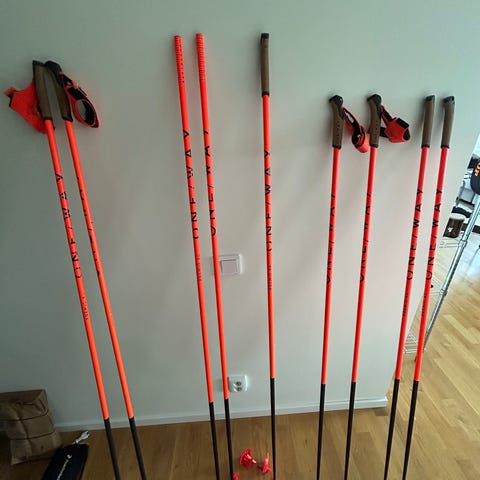 Toppstavar från KV+ och Skigo. KV+-stavarna är sparsamt använda. Skigo-stavarna är helt nya. Rem och truga ingår.